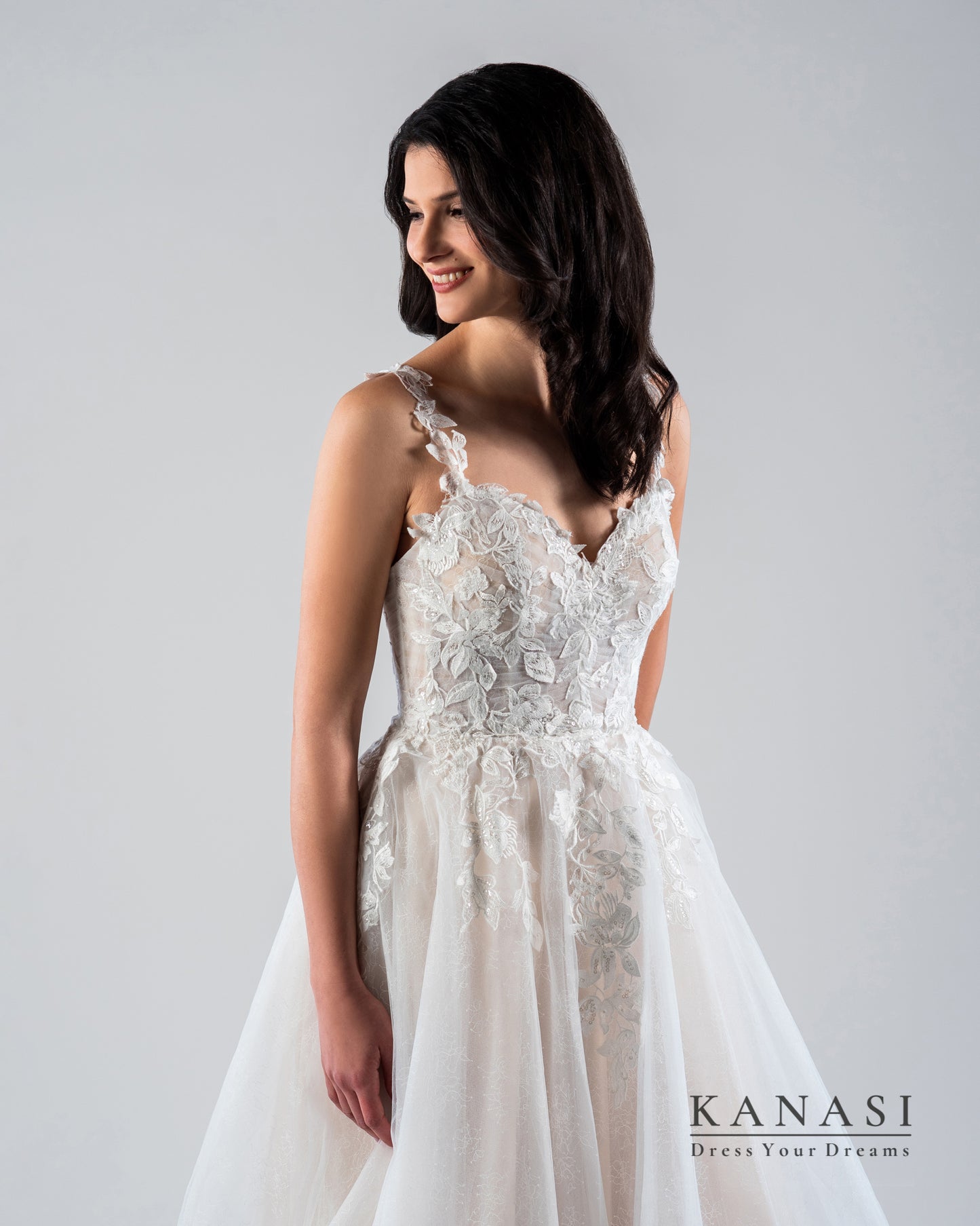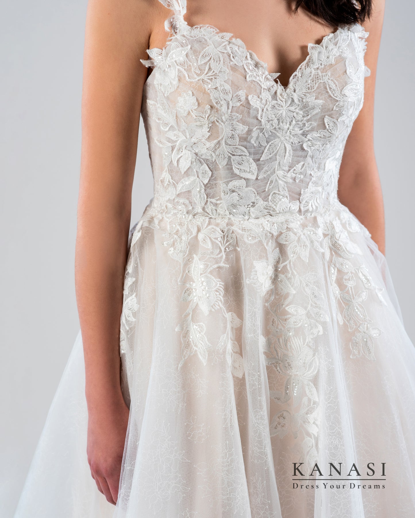 Kanasi poročne obleke so profesionalno fotografirane v Sloveniji, s ciljem prikazati njihov resnični videz, detajle in kakovost materialov.